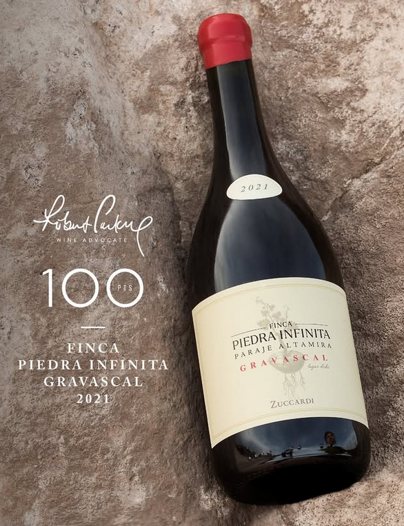 Mit Stolz dürfen wir verkünden: Zuccardi hat erneut die magischen 100 Punkte von Robert Parker erhalten – und das gleich für den Spitzenwein Finca Piedra Infinita Gravascal 2021. Damit reiht sich dieser Wein in die absolute Weltelite ein.