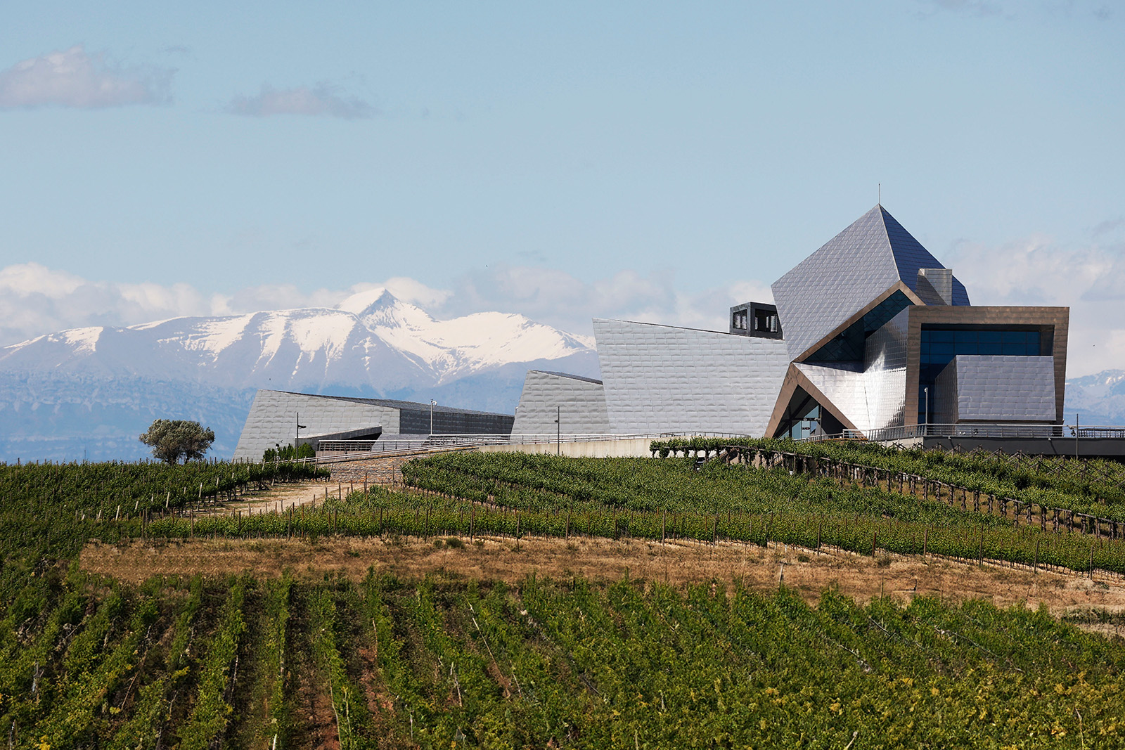 Schon das Weingut selbst ist ein Statement. Die avantgardistische Architektur, inspiriert vom markanten Cotiella-Massiv der Pyrenäen, wurde von The Drinks Business zu einem der „Top 10 architektonischen Wunder der Weinwelt“ gekürt. Doch die spektakuläre Optik ist kein Selbstzweck: Das 27 Meter tief angelegte Gebäude ermöglicht eine vollständige Schwerkraftvinifikation, bei der auf Pumpen weitgehend verzichtet wird – ein entscheidender Faktor für maximale Schonung des Leseguts.